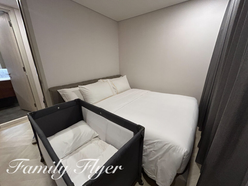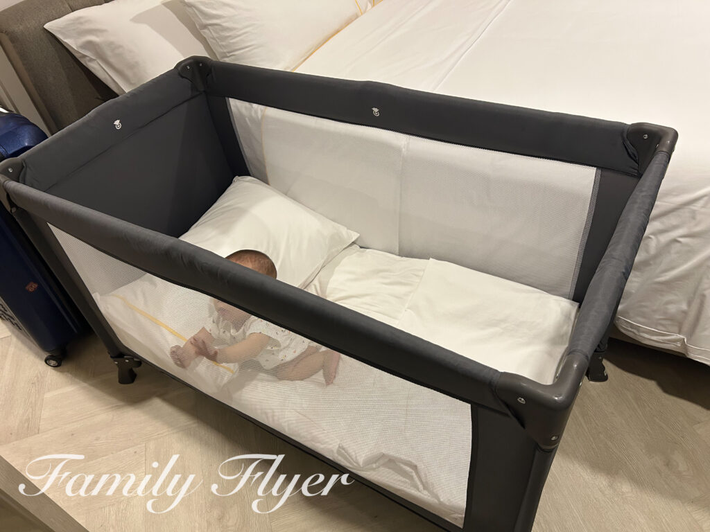 0歳児連れとお伝えしていたところ、使い勝手の良いベビーベッドにフカフカの布団や枕もセットしてくれました。