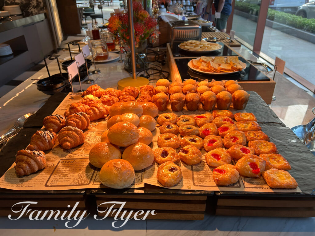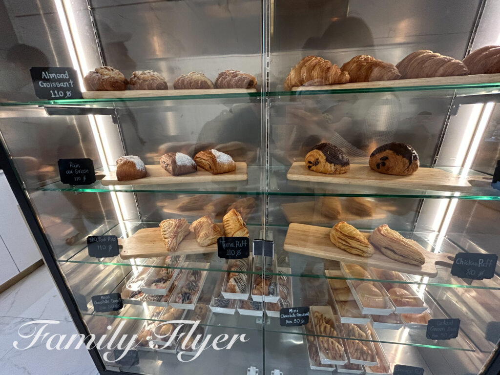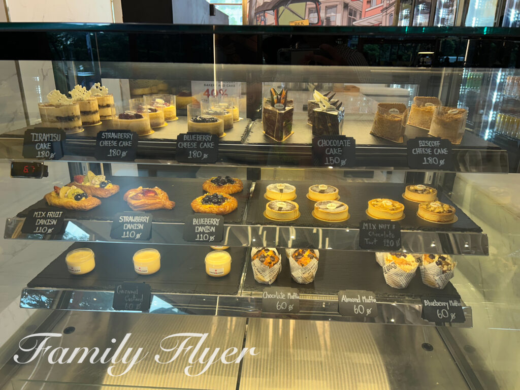 ロビー奥にあるカフェのベーカリーはなんと夕方以降半額。定価でクロワッサンやデニッシュが110バーツ、ケーキが1ピース180バーツでした。