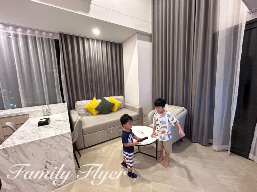 もともと歩道が整っておらず交通量も多いバンコクなので、基本的に子連れでの移動はGrab一択。施設内にコンビニもあるので、実際滞在してみてアクセスの不便さはそこまで感じませんでした。