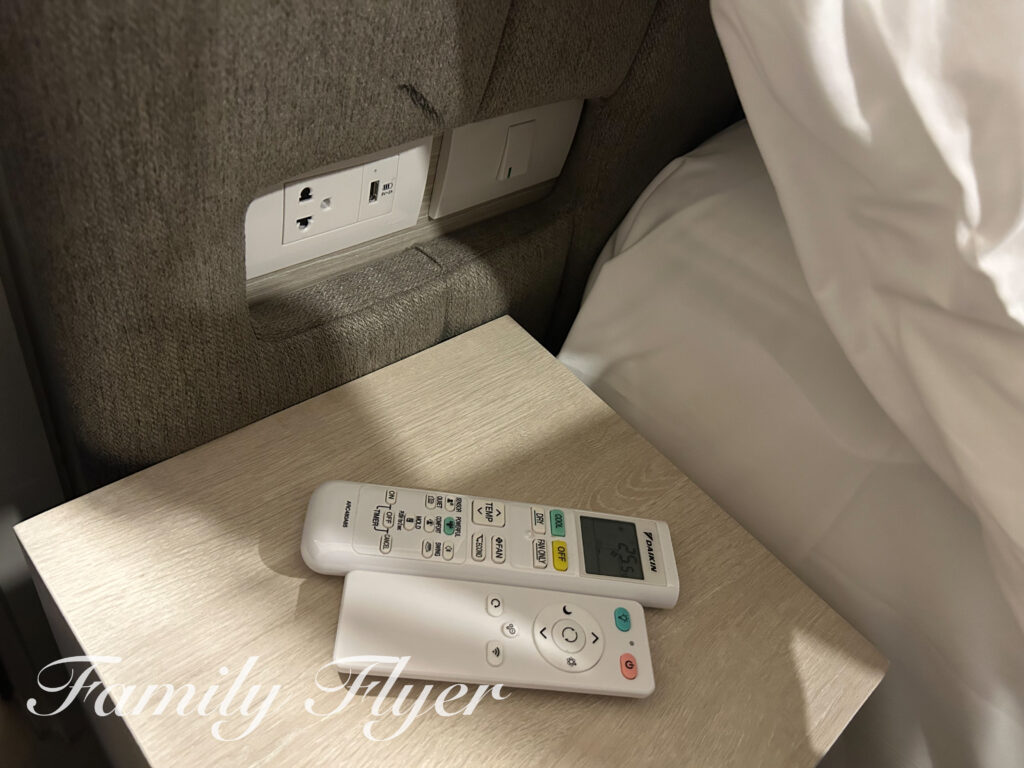 ベッドサイドにUSBポートがあるので充電もばっちりです。