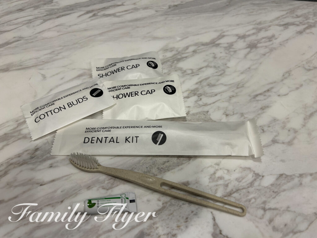 アメニティは最低限。歯ブラシはしなやかに曲がる系なので、しっかり磨きたい方は持参をおすすめします。