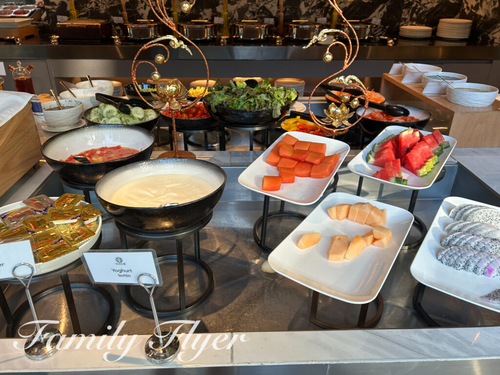 フルーツはメロン・スイカ・パパイヤ・ドラゴンフルーツ。ヨーグルトはシュガー入りのみでした。