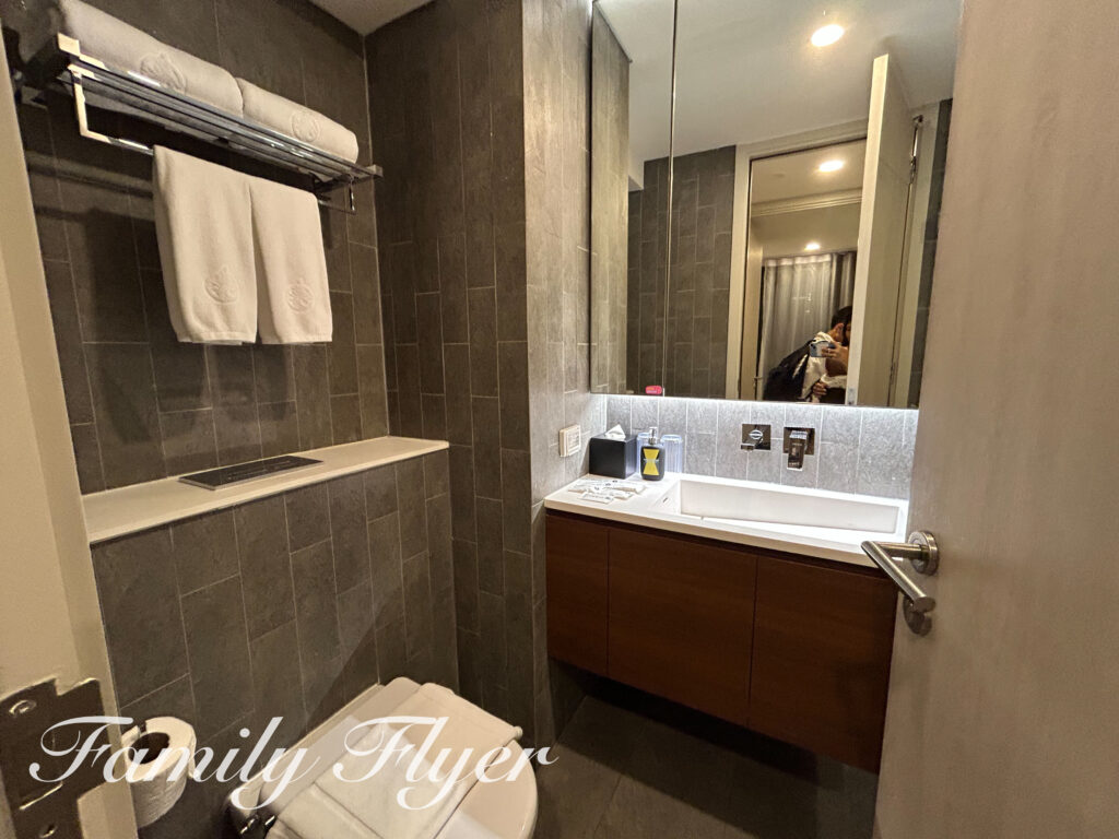 バスルームのコンパクトさに対してドアが内側に開くため、ちょっと出入りしづらいのだけ少し難点です。