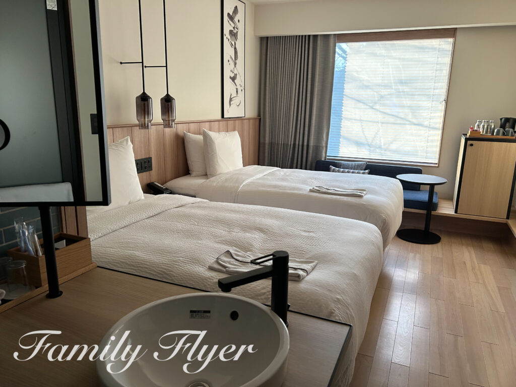 25平米とのことですが、コネクトドアを開け放しても余裕があり、同じ平米数のフェアフィールドもてぎよりも広さを感じました。客室清掃はもてぎがものすごく綺麗だったので甲乙つけ難いです。