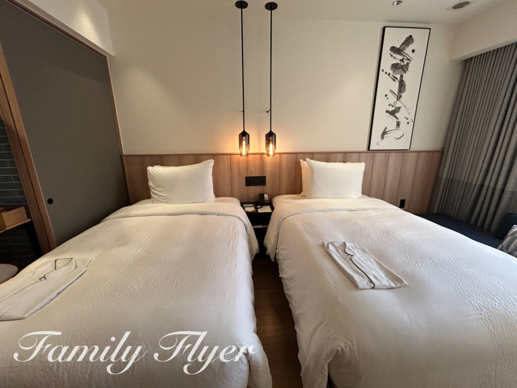 ツインは幅120cm、こちらも1名ずつの添い寝が余裕の大きさです。