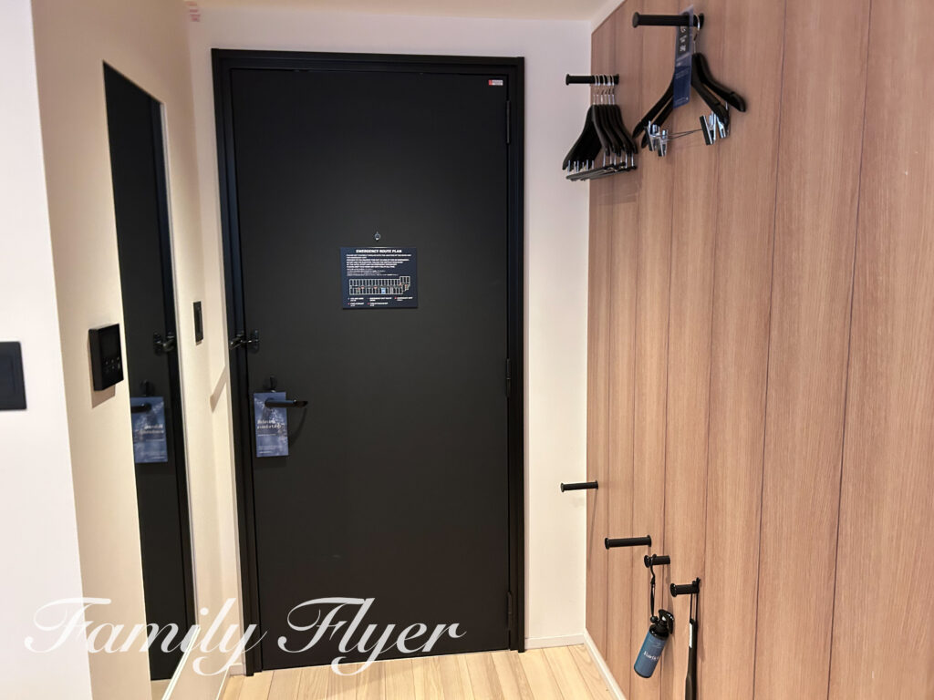 ドア前もとても広々しており家族連れでも安心。全身鏡も大きいです。