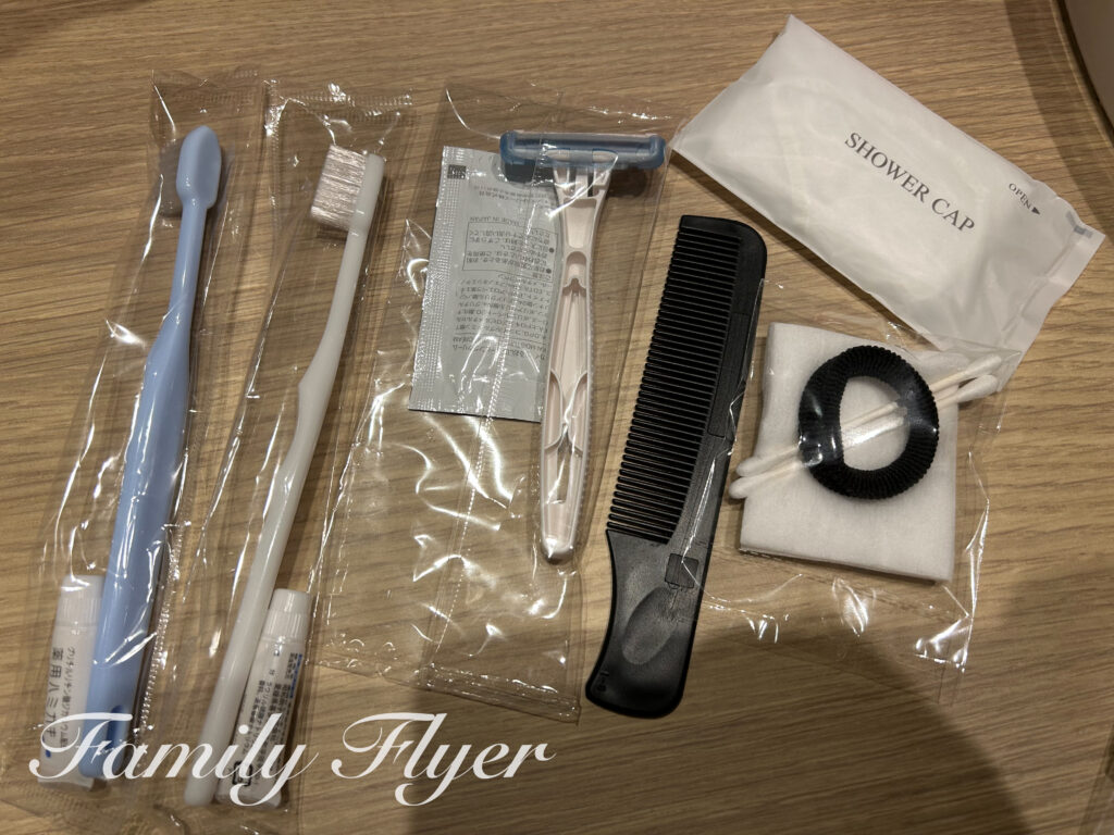 キッズアメニティやパジャマはありません。バスアメニティも赤ちゃんやお肌のデリケートなお子さんは持参が安心。