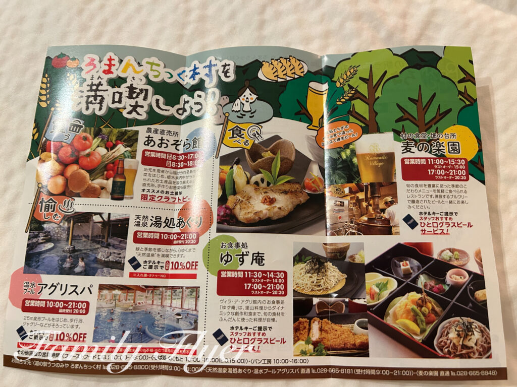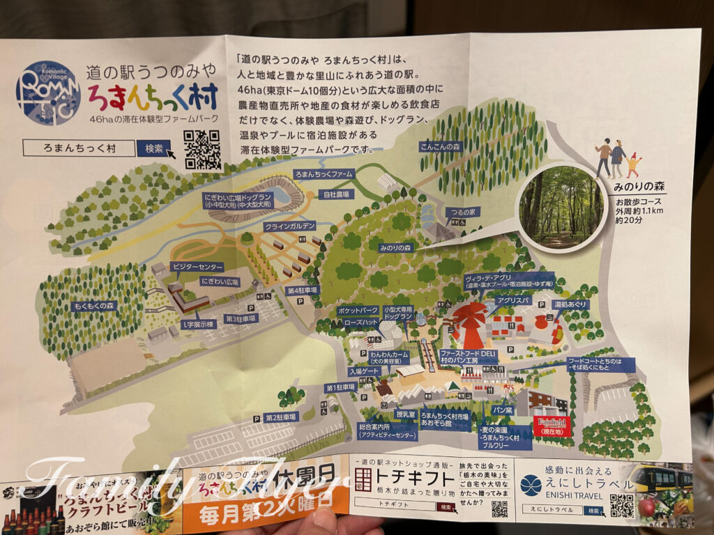 「道の駅うつのみや ろまんちっく村」の温泉施設は幼児の足でもすぐな上、ルームキーを見せると割引も。