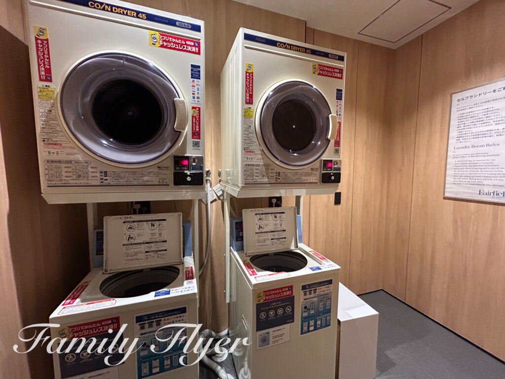 ロビー奥にあるコインランドリーの決済は残り時間なども確認できる専用アプリのみなので、事前ダウンロードがおすすめです。