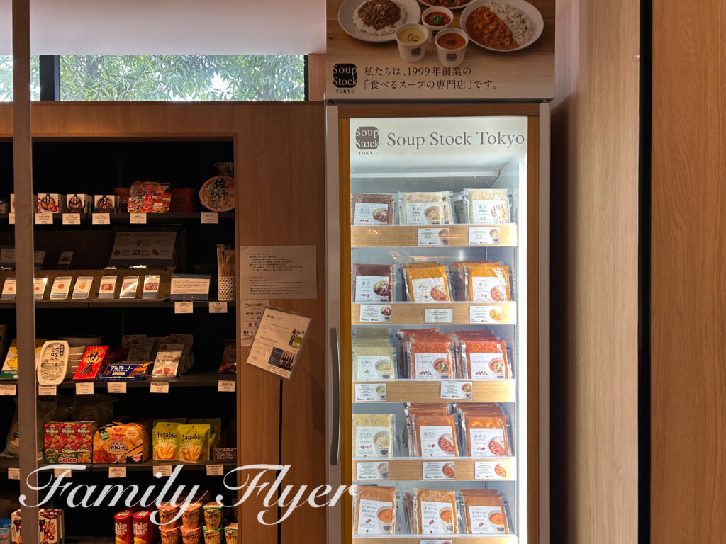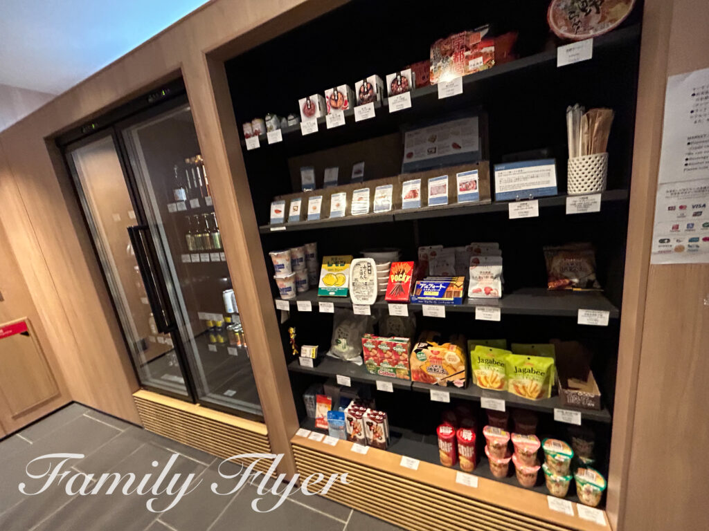 レンジとトースターも完備。道の駅はチェックイン時間にはほぼお惣菜やパンなど売り切れてしまいますが、ロビーでもパンやスープストックなどを販売しているので安心です。