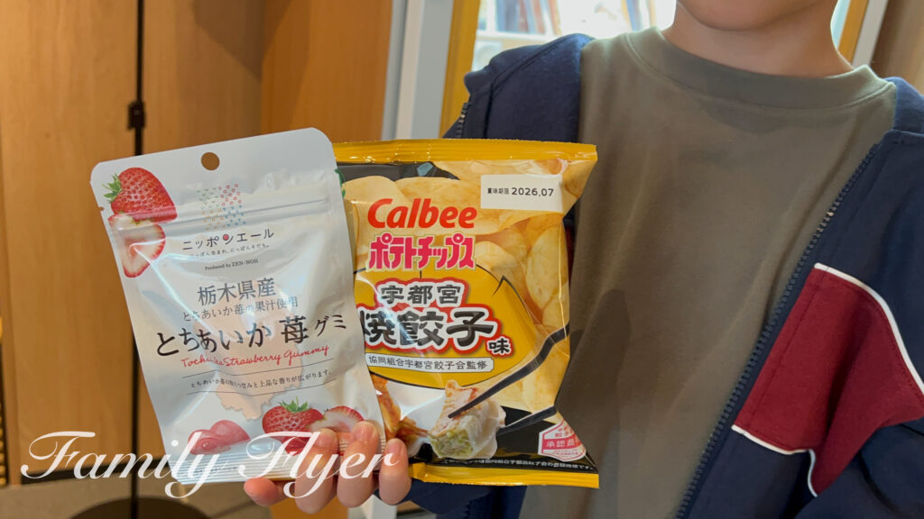 宿泊時アンケートに回答すると1部屋につき1個フロントでプレゼントも。滞在時は栃木ならではのお菓子をいただきました。