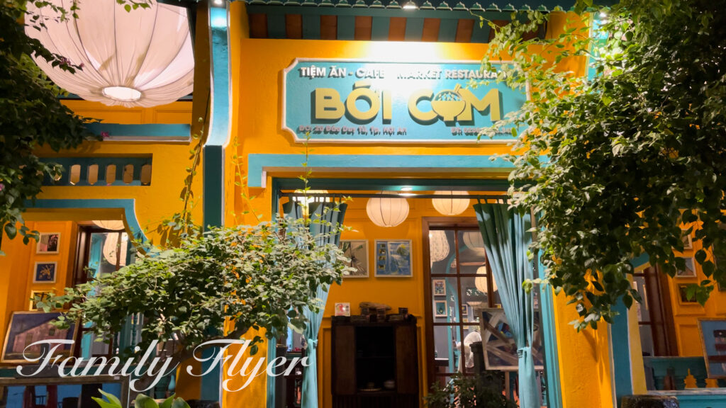 ミークアンやカオラウなどの絶品ベトナムフードレストラン「Bới Cơm」も歩いてすぐ。日が暮れると特に混雑する中心部でのディナーはお子さん連れには大変なので、テイクアウトもおすすめです。
