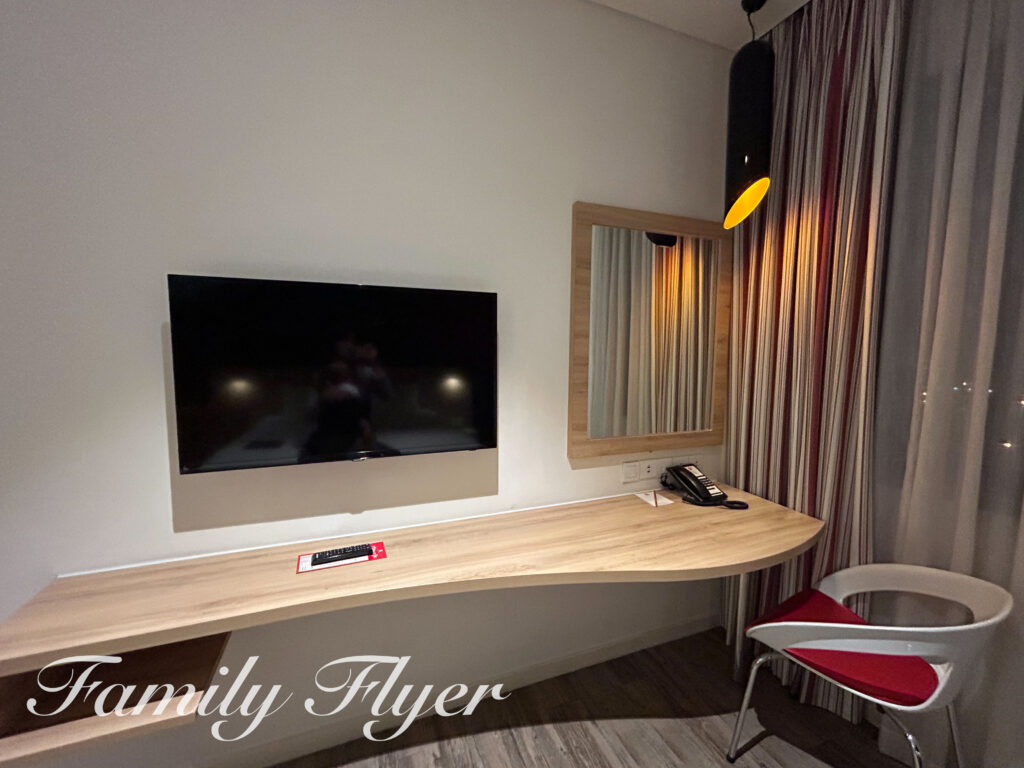 この価格帯で寝室にテレビがあるのはちょっとびっくり。デスクも場所を取らないスマートな形です。