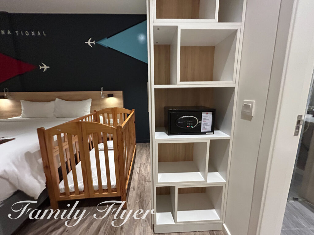 6人家族の荷物も余裕で置けるクロークスペースにはミニバー、セーフティボックスも。