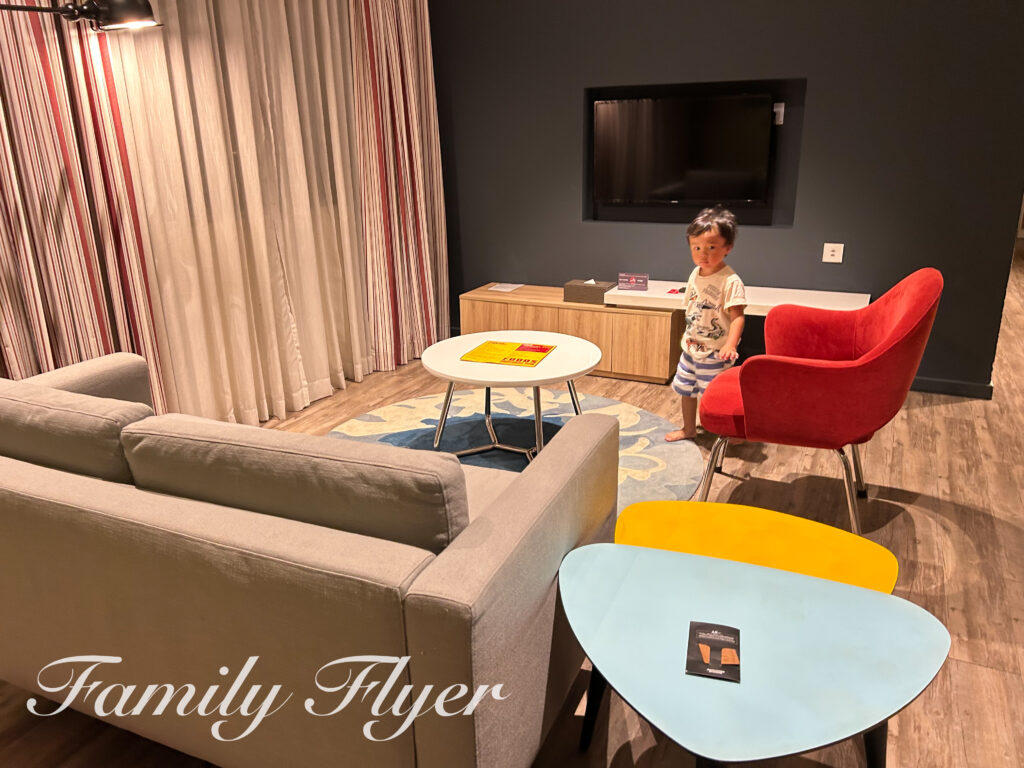 5名まで宿泊可能のファミリールーム。26平米ですが無駄のない作りなので、6人でもゆったり過ごせました。