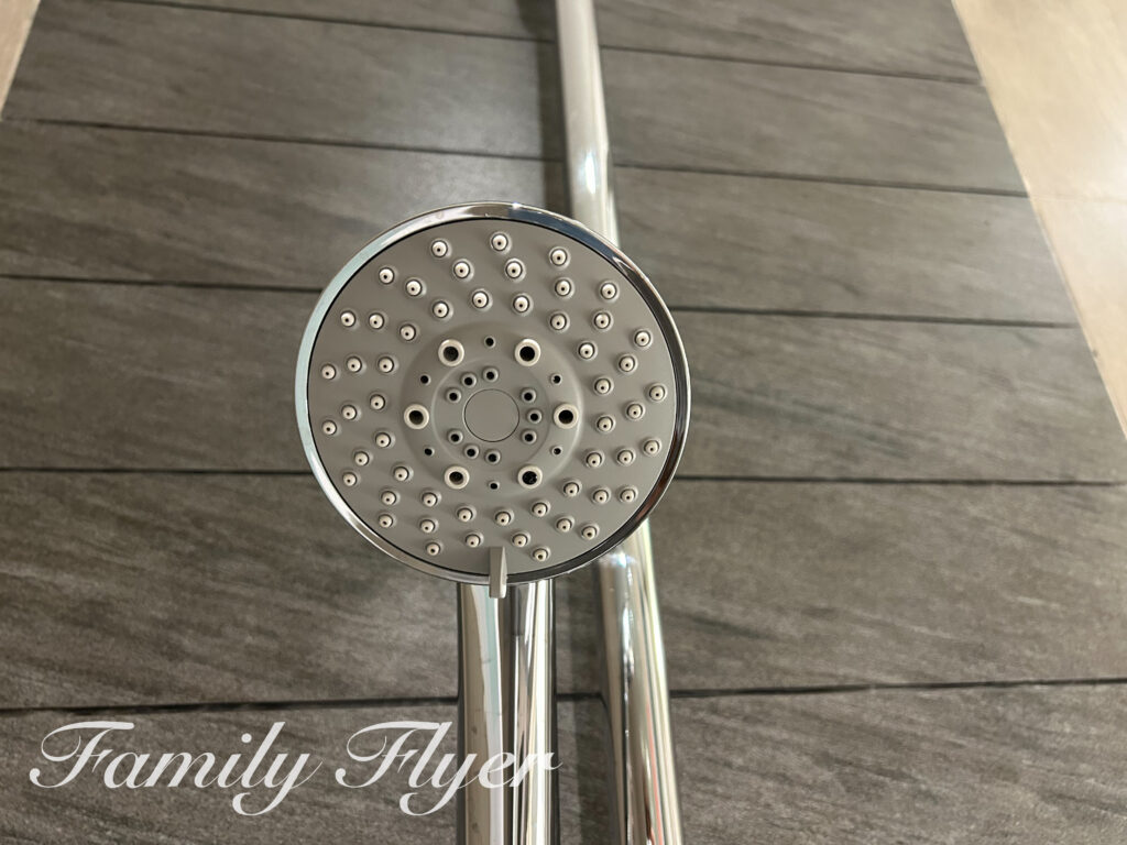 シャワーブースの扉は作りが甘めなので気をつけないとトイレ周りの床までびしょびしょになりますが、水圧は問題なし。そして本当に清潔。