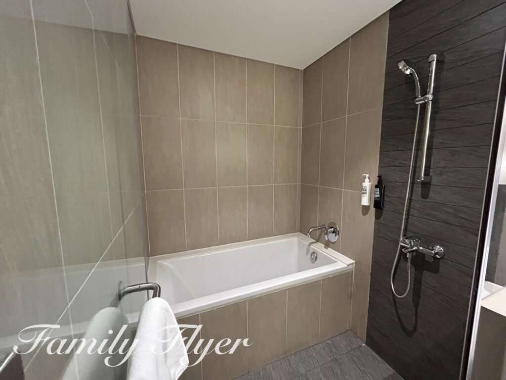 シャワーブースもスタンダードと比べるとだいぶ広々しており、ドアもばっちり閉まりました。