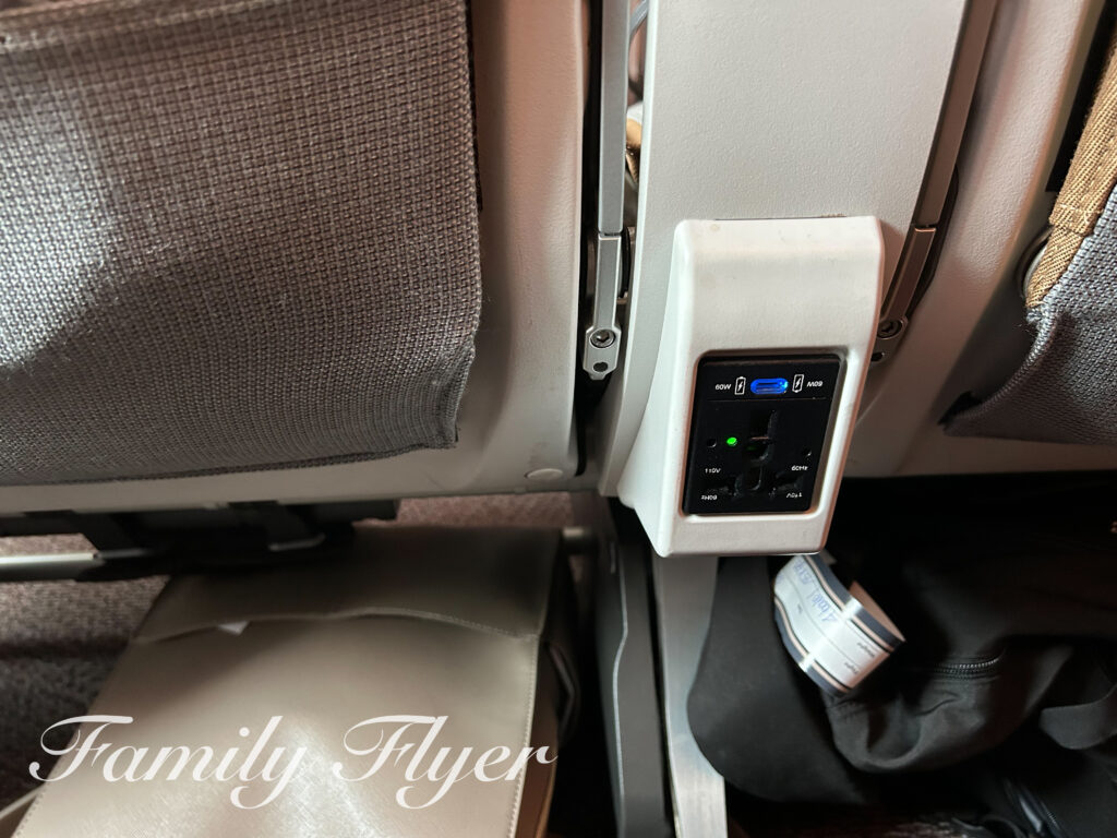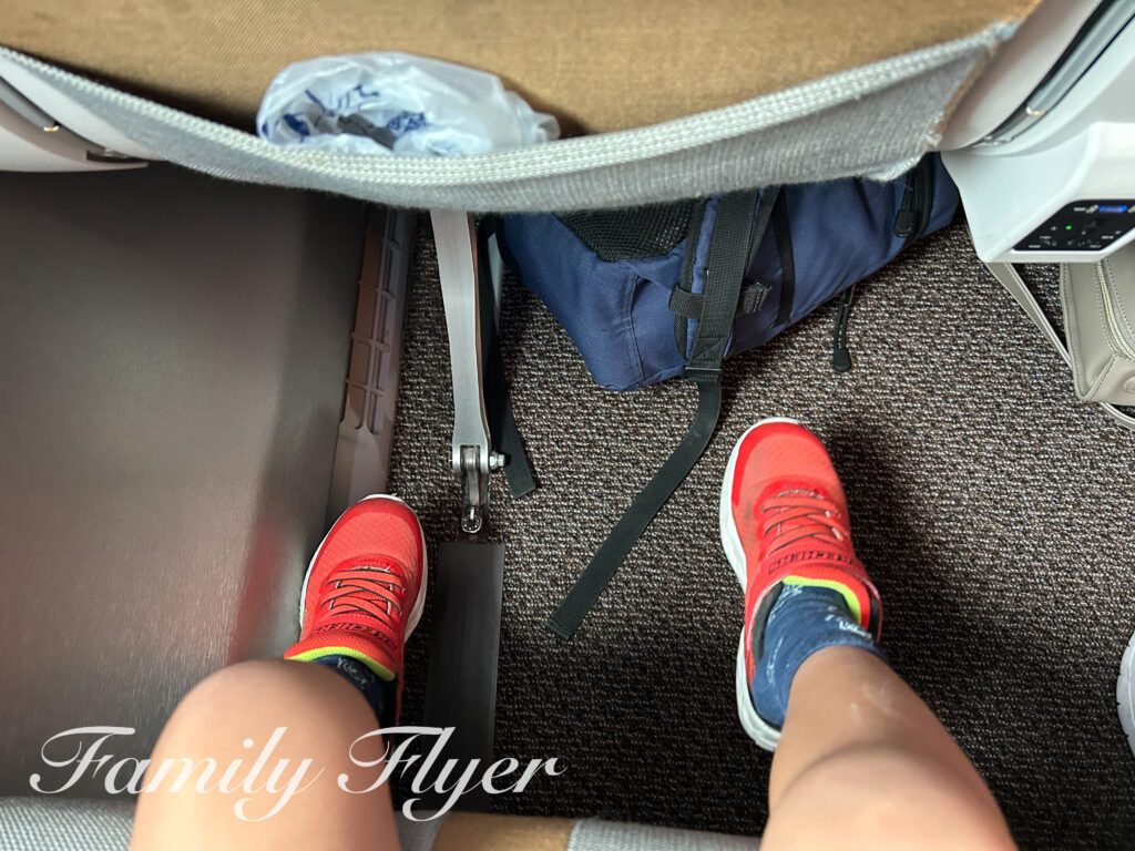 座席間に余裕があるからか、膝上搭乗用のベルトはありません。赤ちゃん向けのアメニティ類も搭乗した時点(2025年10月)はありませんでした。