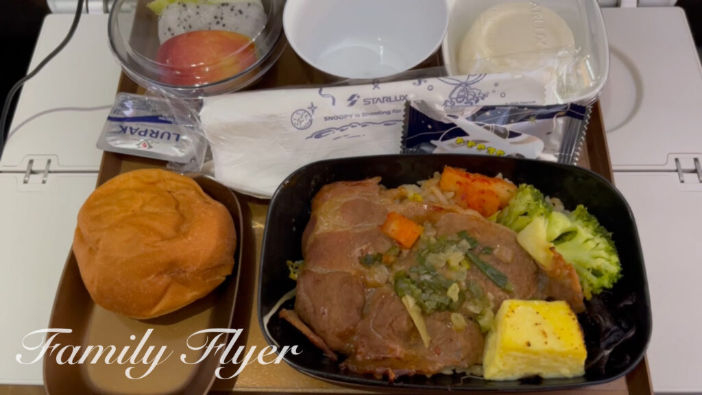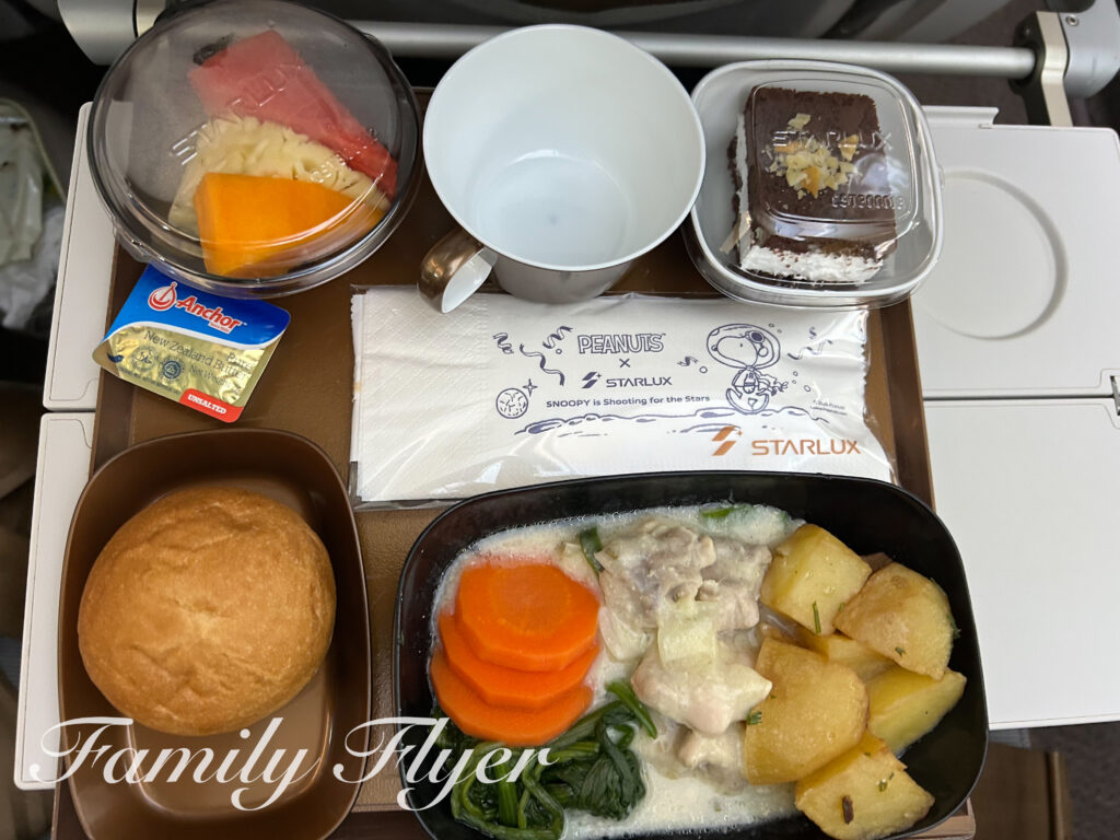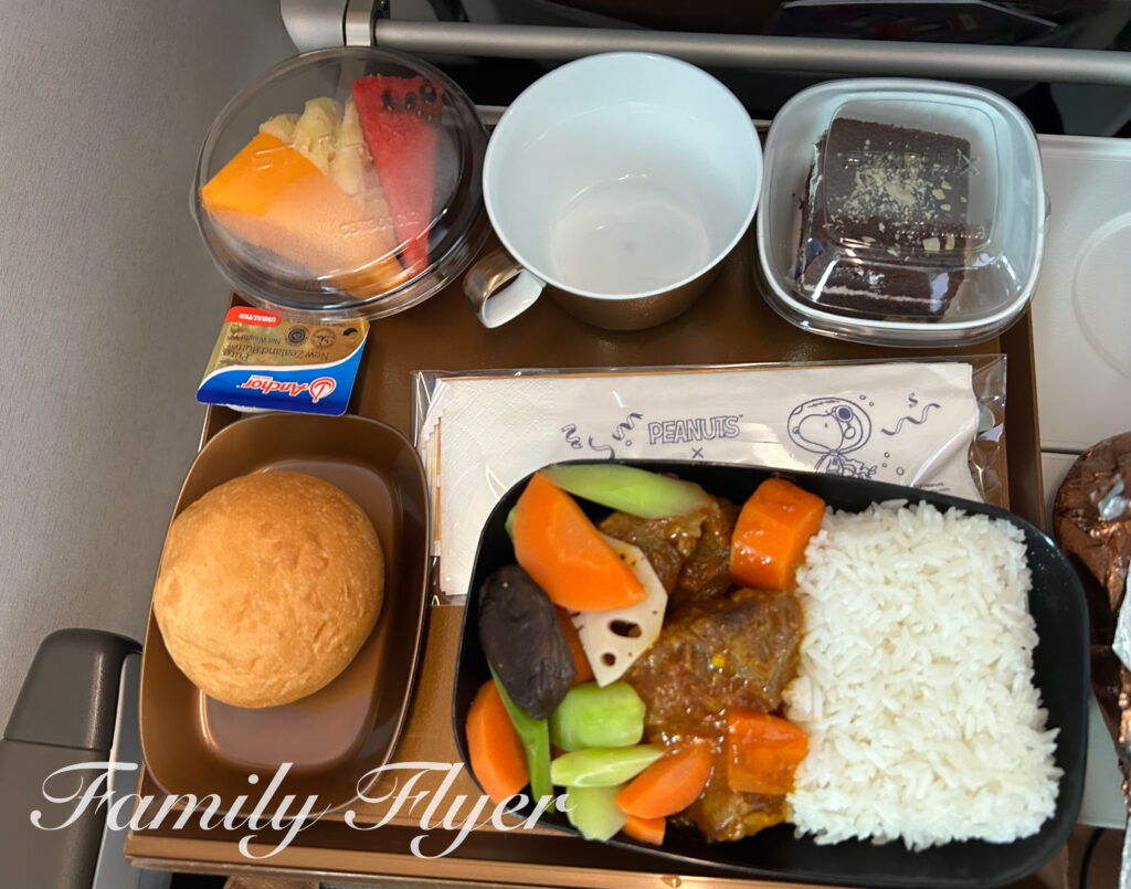 さすがご当地発の便、タンソンニャット発とは異なり美味しい機内食。スヌーピーのクッキーもかわいいです。