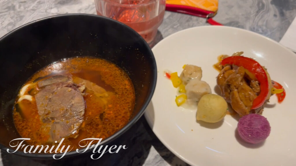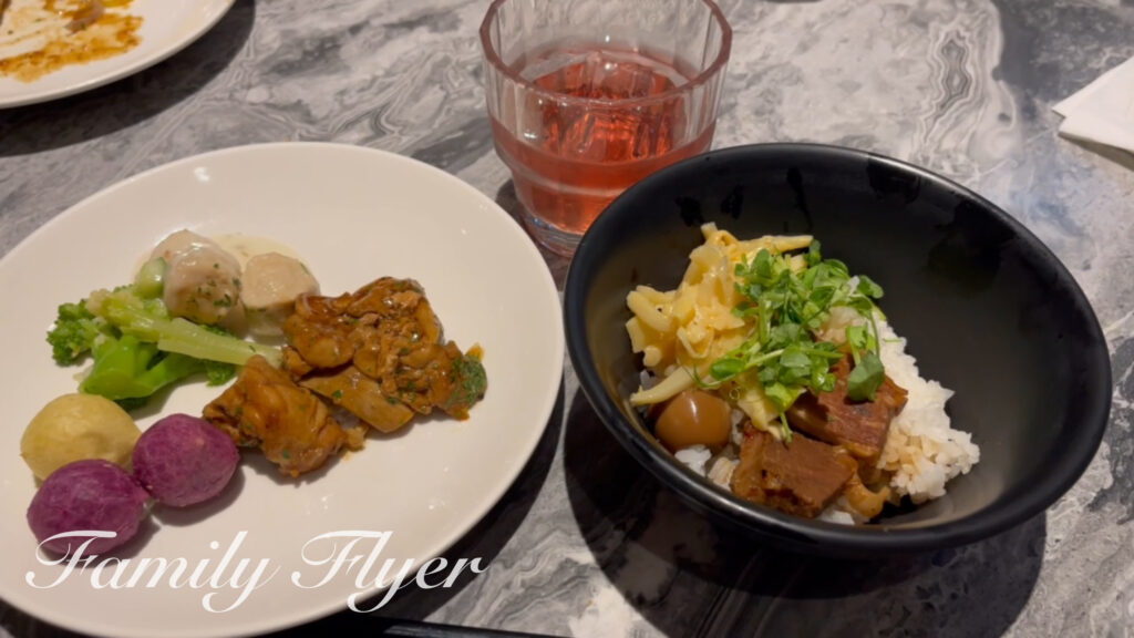 プラザプレミアムラウンジでは、しっかりしたホットミールが提供されているので満腹に。